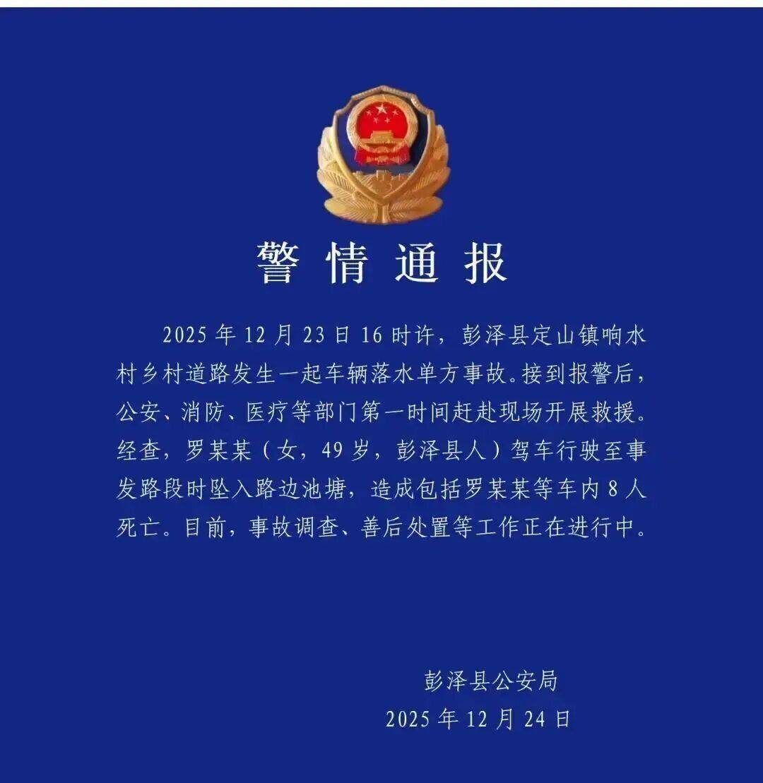 2025年12月23日16时许,彭泽县定山镇响水村村落道发生一路车辆落水单方变乱。据领会,出事车辆是一辆轿车,日常平凡由本地长儿园园长罗某某驾驶。事发前,罗某某驾驶该轿车正送多名儿童回家,由东向西行驶颠末池塘时,坠入水中。